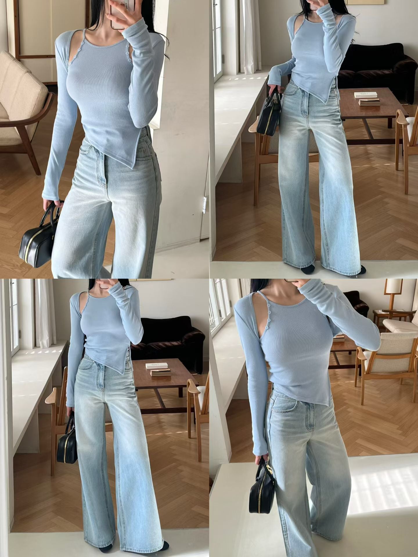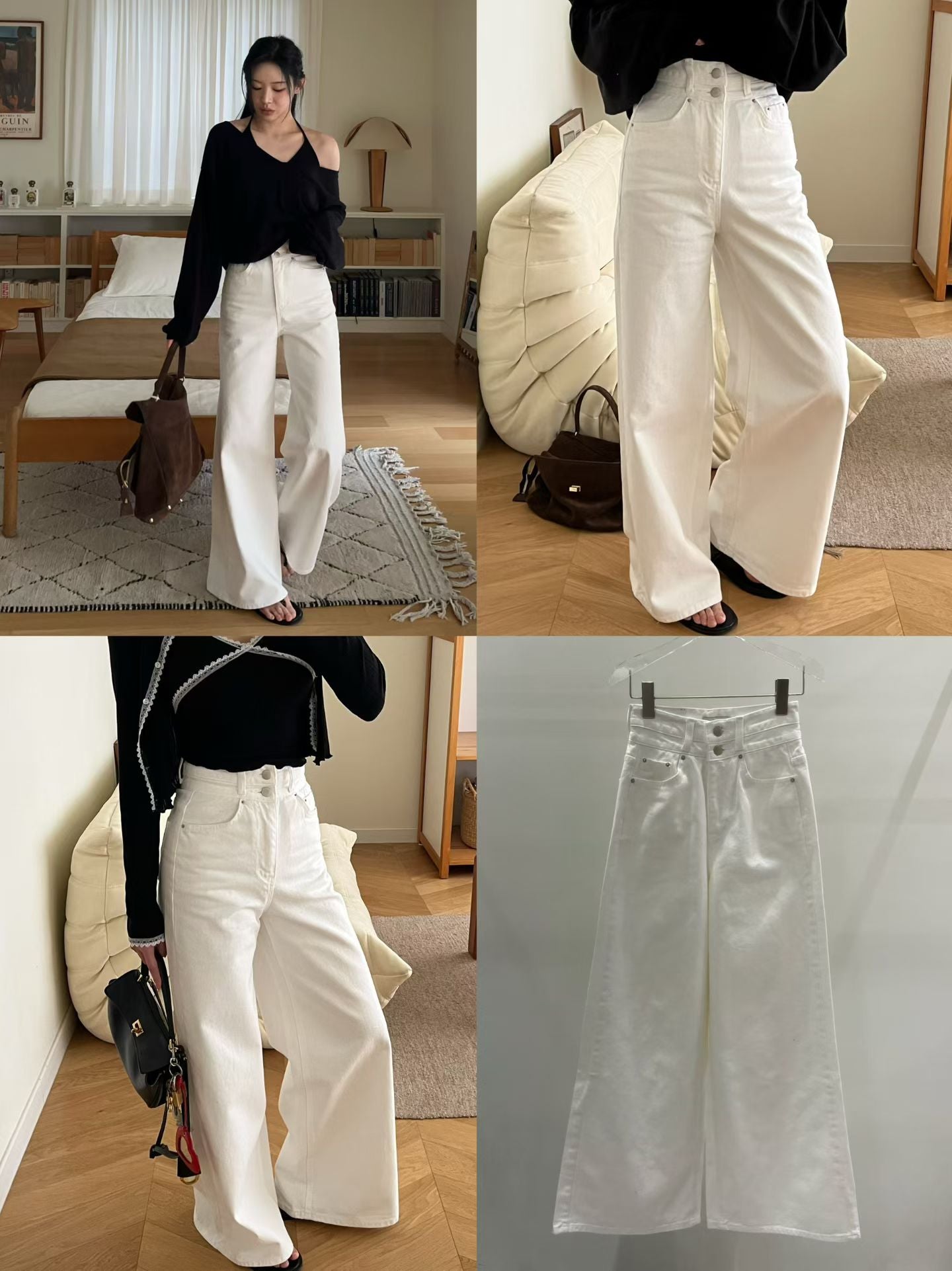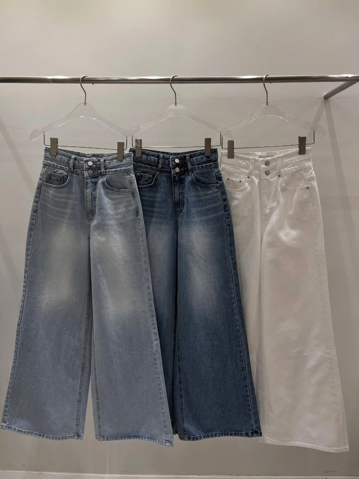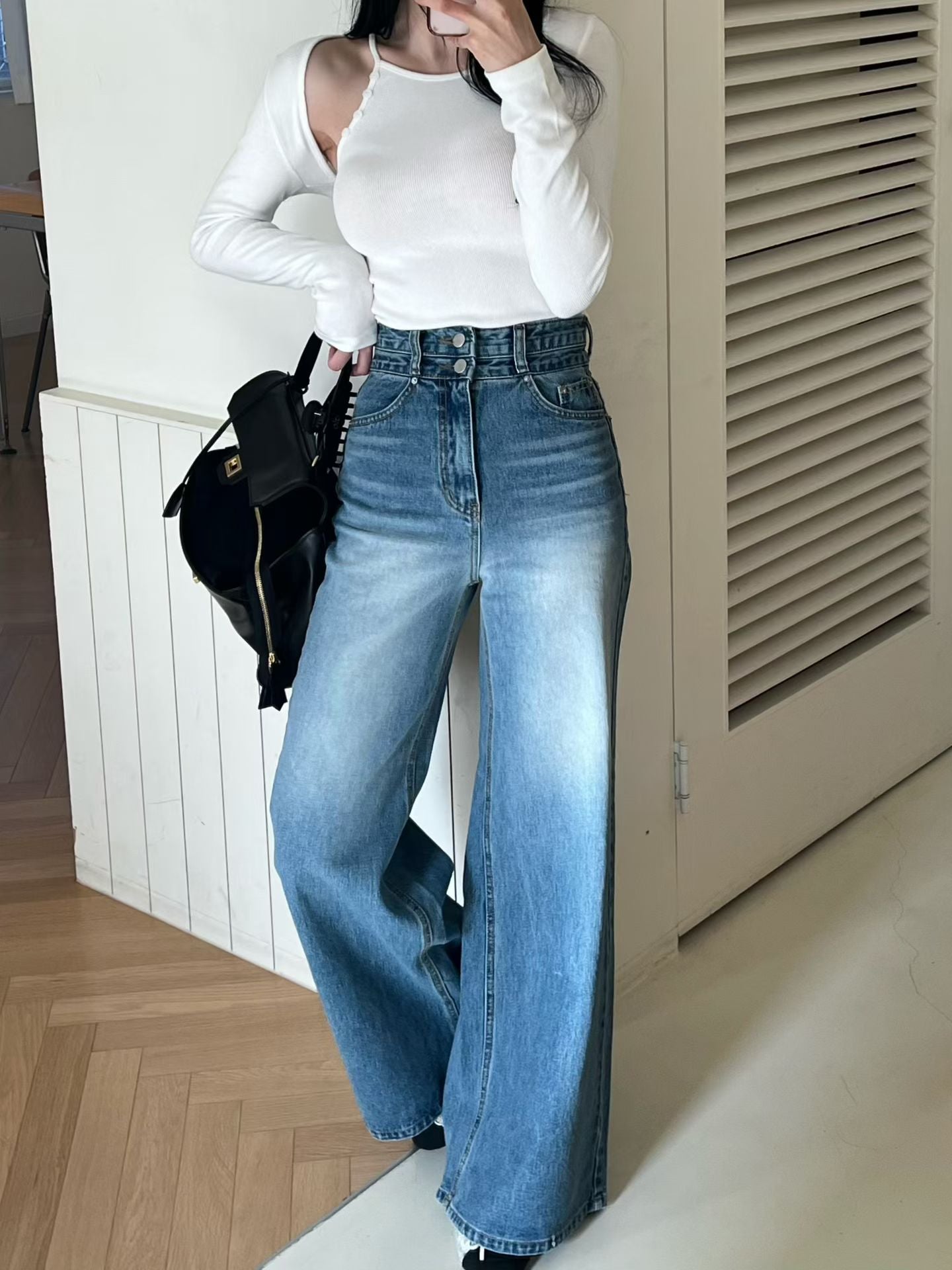 雙鈕扣高腰顯瘦腿長牛仔褲 *共3色